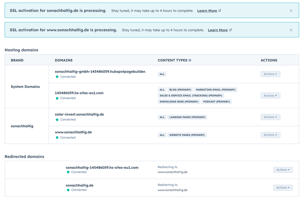 Hi, when I visit the website https://www.sonachhaltig.de, I get the following error message:Since then, the site has been unavailable.SSL provisioning for www.sonachhaltig.de has been stuck for over a day.DNS is