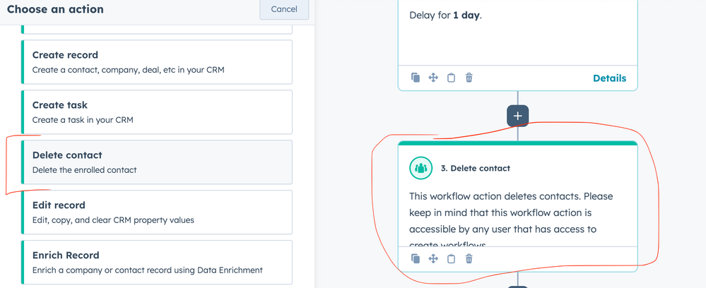 Why can’t I delete company records in workflows, but I am able to delete contact records in workflows? Now I am automatically deleting spam contacts, but their linked companies remain in